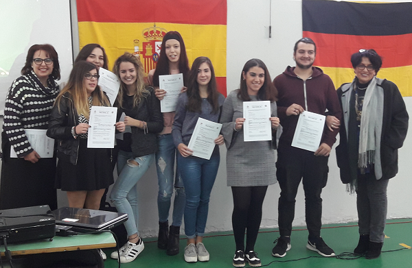 La prof.ssa Rosalba Cianci ha consegnato le certificazioni agli alunni e la prof.ssa Di Gennaro si è congratulata con i suoi stessi alunni, ragione in più essendo la docente componente ufficiale della Commissione DELE valutatrice degli studenti e dei loro esami in lingua spagnola.